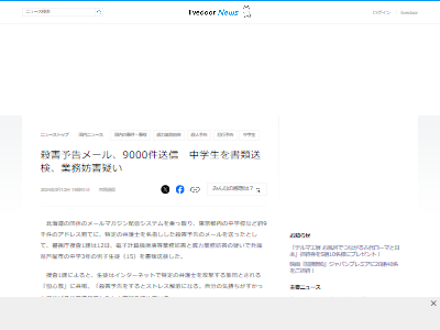 殺害予告メール、9000件送信 中学生を書類送検、業務妨害疑い