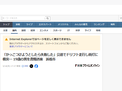 「かっこつけようとしたら失敗した」公道でドリフト走行し街灯に衝突… 19歳の男を書類送検 浜松市 (FNNプライムオンライン(フジテレビ系)) – Yahoo!ニュース