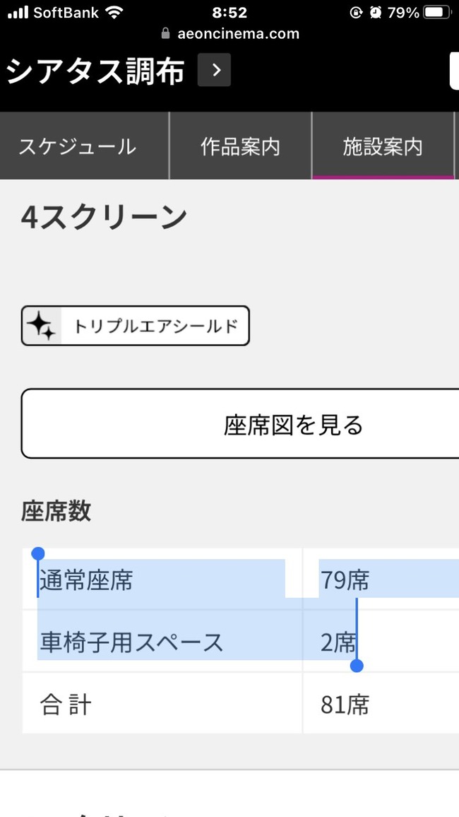この「シアタス調布」という映画館は大規模で、「グランシアター」以外のスクリーンの殆どに車椅子席がついている。それをガン無視してわざわざこのスクリーンを選び、女性スタッフ2人に善意で重労働の介助させ、断られたら騒ぐ。私が車椅子でもこんな行動は絶対取らない。図々しいにも程がある。 https://t.co/yIQZgt9Lti