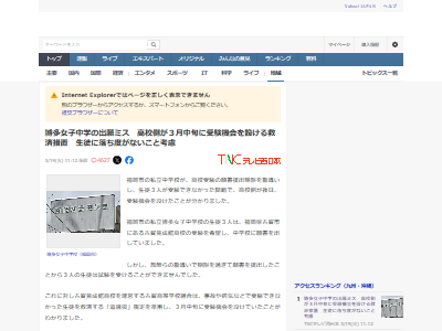 博多女子中学の出願ミス 高校側が3月中旬に受験機会を設ける救済措置 生徒に落ち度がないこと考慮