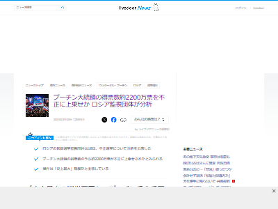 「史上最大の選挙不正」=プーチン氏2千万票上乗せ―ロシア監視団体分析