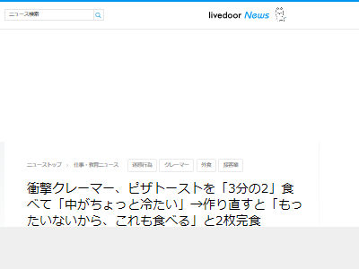 衝撃クレーマー、ピザトーストを「3分の2」食べて「中がちょっと冷たい」→作り直すと「もったいないから、これも食べる」と2枚完食 – ライブドアニュース