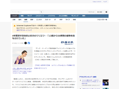 4年間選手資格停止処分のワリエワ…「13歳から56種類の薬物を投与されていた」