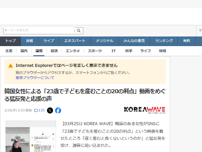 韓国女性による「23歳で子どもを産むことの20の利点」動画をめぐる猛反発と応援の声