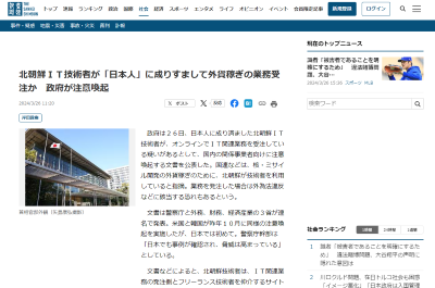 政府は26日、日本人に成り済ました北朝鮮IT技術者が、オンラインでIT関連業務を受注している疑いがあるとして、国内の関係事業者向けに注意喚起する文書を公表した。