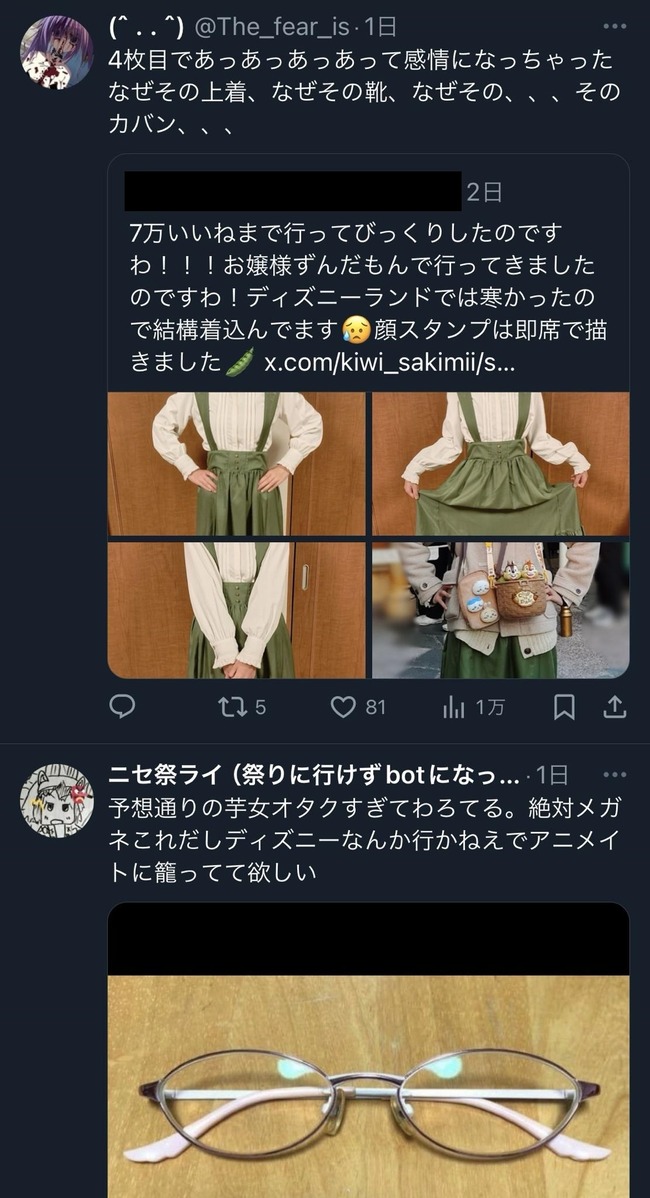 一部で「芋女」「アニメイトにいそう」などと誹謗中傷が発生