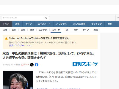 水原一平氏の無断送金に「無理がある。説明として」ひろゆき氏、大谷翔平の会見に疑問止まらず