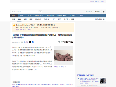【速報】小林製薬の紅麹原料の製品は170社以上 専門家の意見聞き対応検討へ