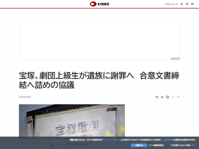 宝塚、劇団上級生が遺族に謝罪へ 合意文書締結へ詰めの協議