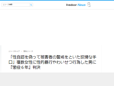 「性自認を偽って被害者の警戒をといた狡猾な手口」複数女性に性的暴行やわいせつ行為した男に『懲役6年』判決 – ライブドアニュース