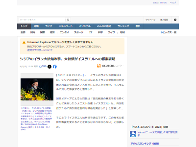 シリアのイラン大使館攻撃、大統領がイスラエルへの報復表明