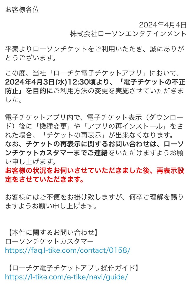 ローチケこういうお知らせでてたんだけどさ