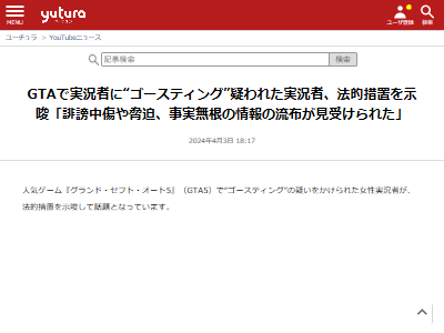 GTAで実況者に“ゴースティング”疑われた実況者、法的措置を示唆「誹謗中傷や脅迫、事実無根の情報の流布が見受けられた」