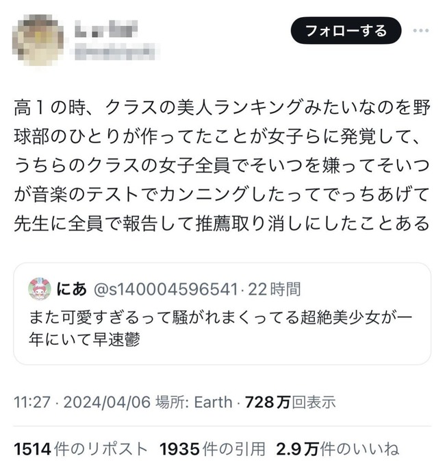 👩「あ〜女子をランキング付けしてる〜‼️こいつがテストで不正したってことにして皆で嘘の報告しよw」