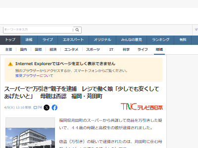 スーパーで“万引き”親子を逮捕 レジで働く娘「少しでも安くしてあげたいと」 母親は否認 福岡・苅田町