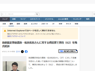 池袋暴走事故遺族・松永拓也さんに対する脅迫罪で男性(62)を略式起訴(TBS NEWS DIG Powered by JNN) – Yahoo!ニュース