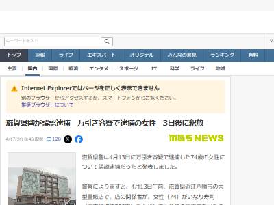 滋賀県警が誤認逮捕 万引き容疑で逮捕の女性 3日後に釈放