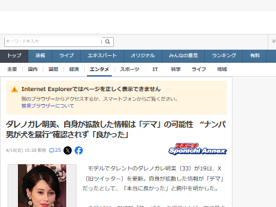 ダレノガレ明美、自身が拡散した情報は「デマ」の可能性 “ナンパ男が犬を暴行”確認されず「良かった」(スポニチアネックス) – Yahoo!ニュース
