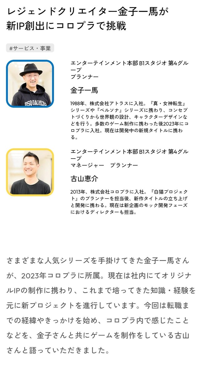 様々な人気シリーズを手掛けてきた金子さんがコロプラにジョイン!「レジェンドクリエイター金子一馬が新IP創出にコロプラで挑戦」