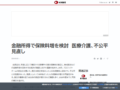 自民党は25日にプロジェクトチームの初会合を開き、所得に応じて徴収される医療や介護の保険料の算定に株式配当などの金融所得を反映する仕組みの徹底に向けた議論を始めた。