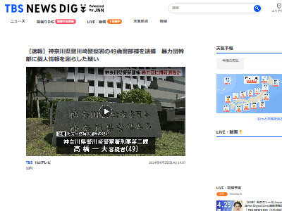 【速報】神奈川県警川崎警察署の49歳警部補を逮捕 暴力団幹部に個人情報を漏らした疑い
