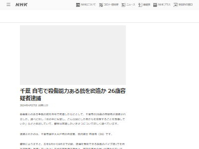 千葉 自宅で殺傷能力ある銃を密造か 26歳容疑者逮捕