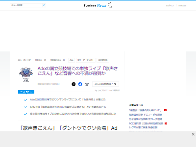 「歌声きこえん」「ダントツでクソ会場」Ado 国立競技場ライブの音響に非難殺到