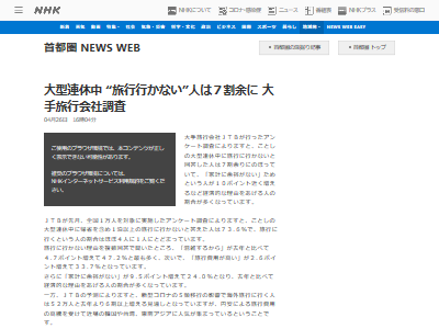 大手旅行会社JTBが行ったアンケート調査によりますと、ことしの大型連休中に旅行に行かないと回答した人は7割余りにのぼっていて、「家計に余裕がない」ためという人が10ポイント近く増えるなど経済的な理由をあげる人の割合が多くなっています。