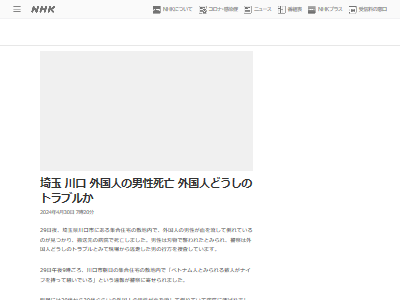 埼玉 川口 外国人の男性死亡 外国人どうしのトラブルか