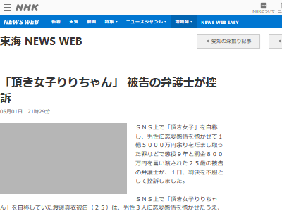 「頂き女子りりちゃん」 被告の弁護士が控訴|NHK 東海のニュース