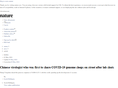 COVID-19ゲノムを初めて公開した中国のウイルス学者、研究所閉鎖後路上で眠る
