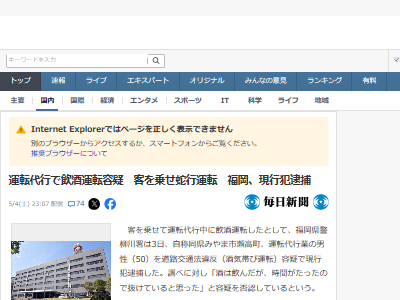 当時は20〜70代の男女3人の客を乗せて運転代行中だった。パトロール中の警察官が中央線をはみ出すなど蛇行運転していた車を見つけ、男性に呼気検査を実施したところ、基準値の6倍を超えるアルコールが検出された。