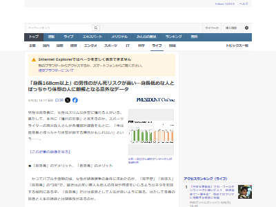 「身長168cm以上」の男性のがん死リスクが高い…身長低めな人とぽっちゃり体型の人に朗報となる意外なデータ