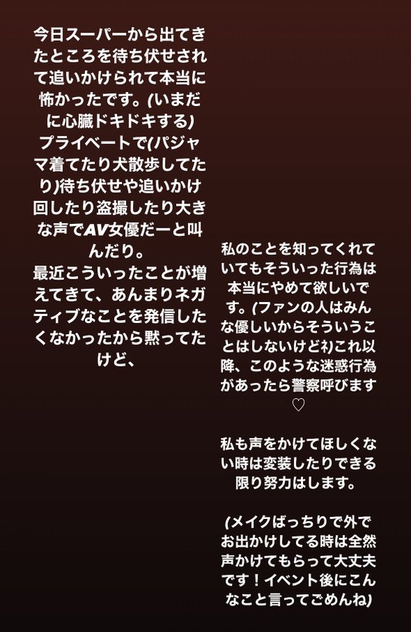 今日私のことを待ち伏せした男の子たちが、このツイートを見たらと思うと、ごめんなさい返信は非表示にさせていただくことにします!私と、あなた。軽い気持ちでも知らない人に待ち伏せされて追いかけられたというのが私の見て感じた状況です。これから誰に対してもそんなことしないでね。