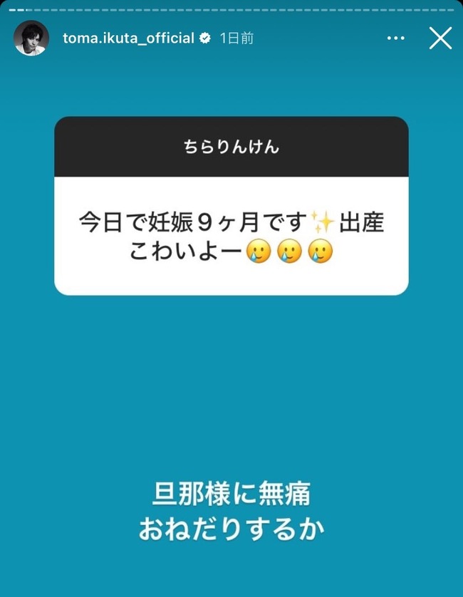 生田斗真これ嘘とかのっとりじゃなくマジで❓やばすぎ。無痛にするのに旦那様におねだりして許可を頂く必要ないだろww
