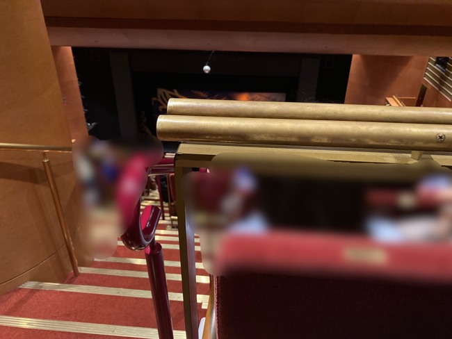 一応補足しておくと幕が開いてから腰を浅くずらしてだらしない姿勢で見れば舞台の2/3くらいは手すりに邪魔されつつ見れます、残りの上手側は前の人の頭で完全に忘れ潰れるので背後の大道具に映ってる影を見て何してるのか察する謎の時間があった https://t.co/OlMdV6zBXs