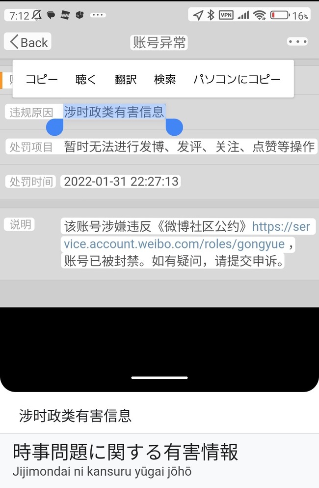 しかもBAN原因が「時事問題に関する有害情報」なのもおもしろい pic.twitter.com/sPLVgoaeil