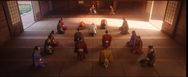 信長の側近っぽいのが信長と同じ段に座っちゃってるしなんか謎に畳だし畳も正方形だし pic.twitter.com/iQMGurf9tA