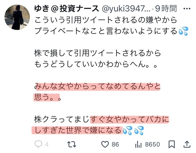 投資ナースさん、怒りが収まらず深夜までレスバ