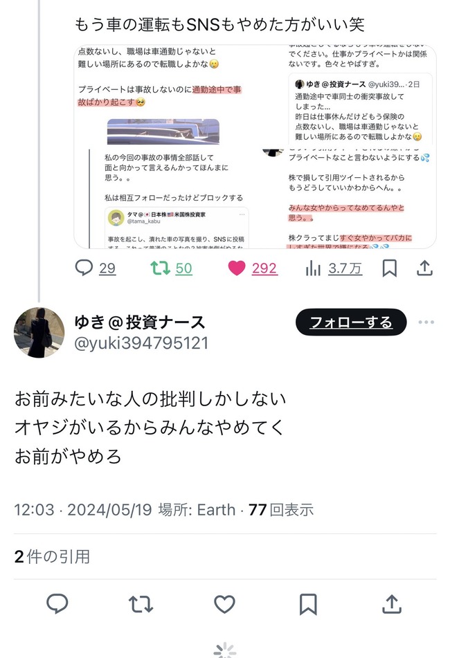 まじクズすぎ— ゆき@投資ナース (@yuki394795121) May 19, 2024