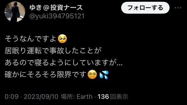 フォロー解除しました— ゆき@投資ナース (@yuki394795121) May 19, 2024