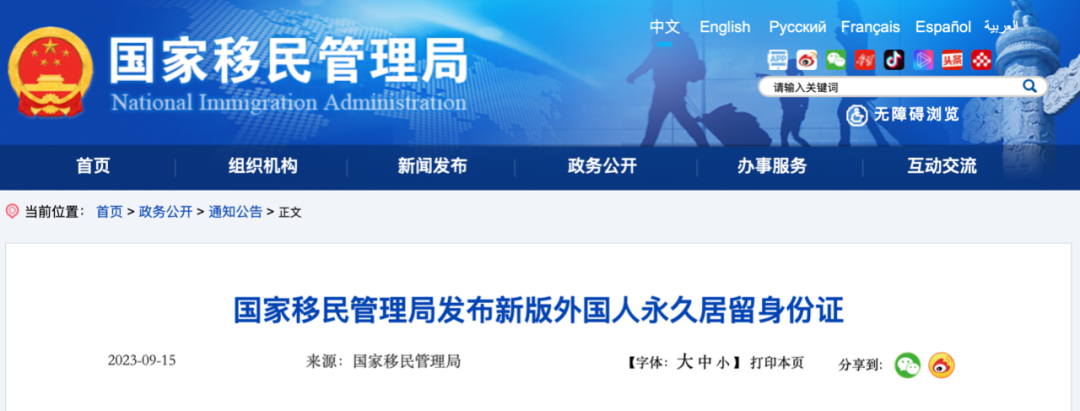 9月15日,中国国家移民管理局在北京召开新闻发布会,宣布从今年的12月1日起,正式签发并启用新版中华人民共和国外国人永久居留身份证(以下简称“永居证”),同时发布了新版永居证的式样。新版永居证启用后,现版永居证在有效期内仍可继续使用,持证人可根据个人需要,适时申请换发新版永居证。