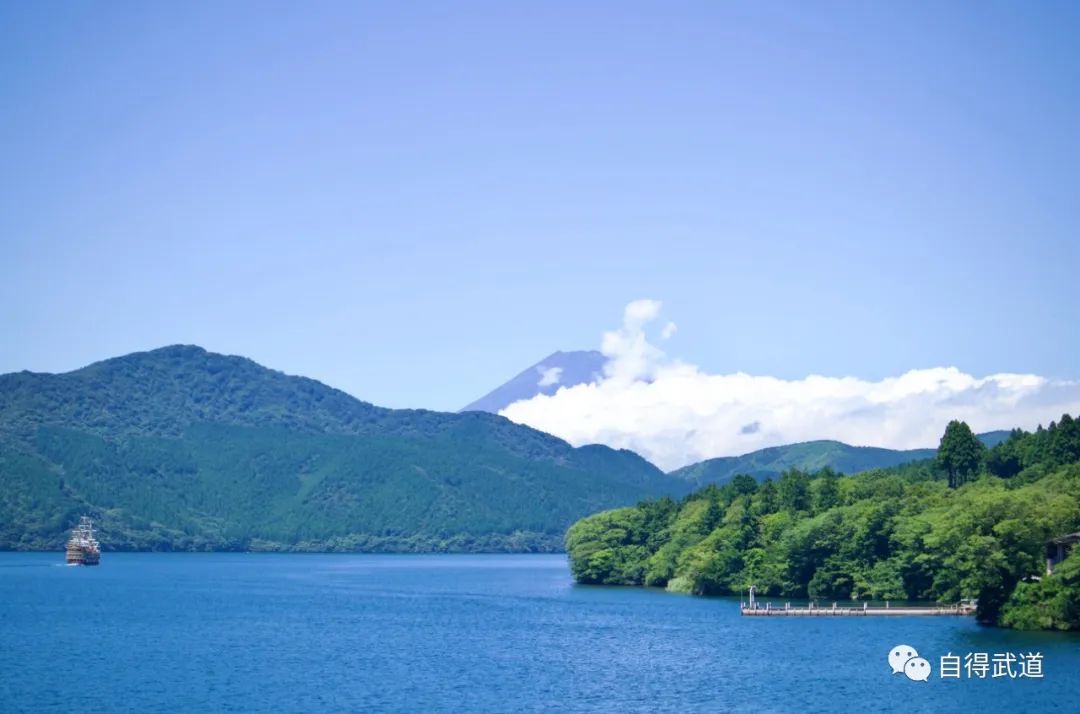 从富士山下来后的第三天,我们在芦之湖上乘坐游船,再一次远眺富士山,得以通过全景模式看到他的样子。