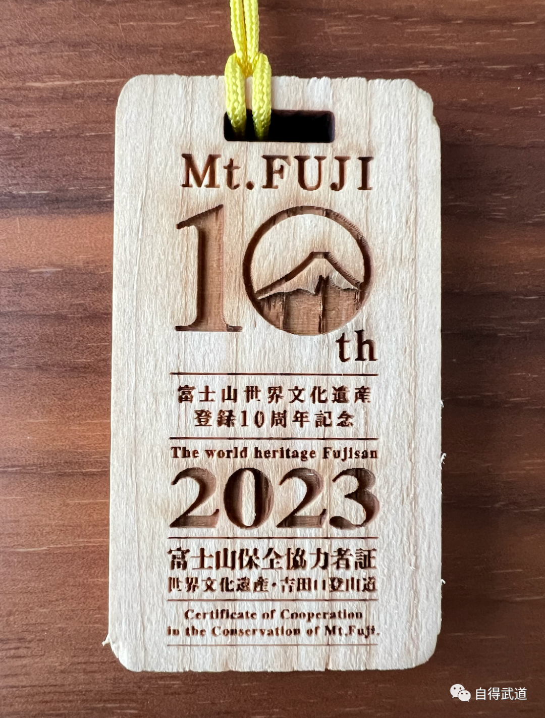 她的手中拿着富士山的“金刚杖”。这是一种木质的手杖,可以在山小屋刻印打卡。金刚杖上盖满了章,从山脚一路盖到了山顶,是一根非常有纪念意义的手杖。