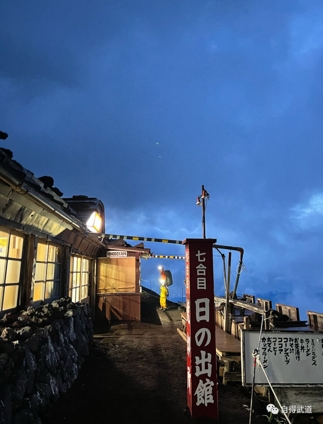 上图是位于七合目标牌的日之出馆,从这里还要再攀登约一个小时,才能到达今天的住宿地镰岩馆。