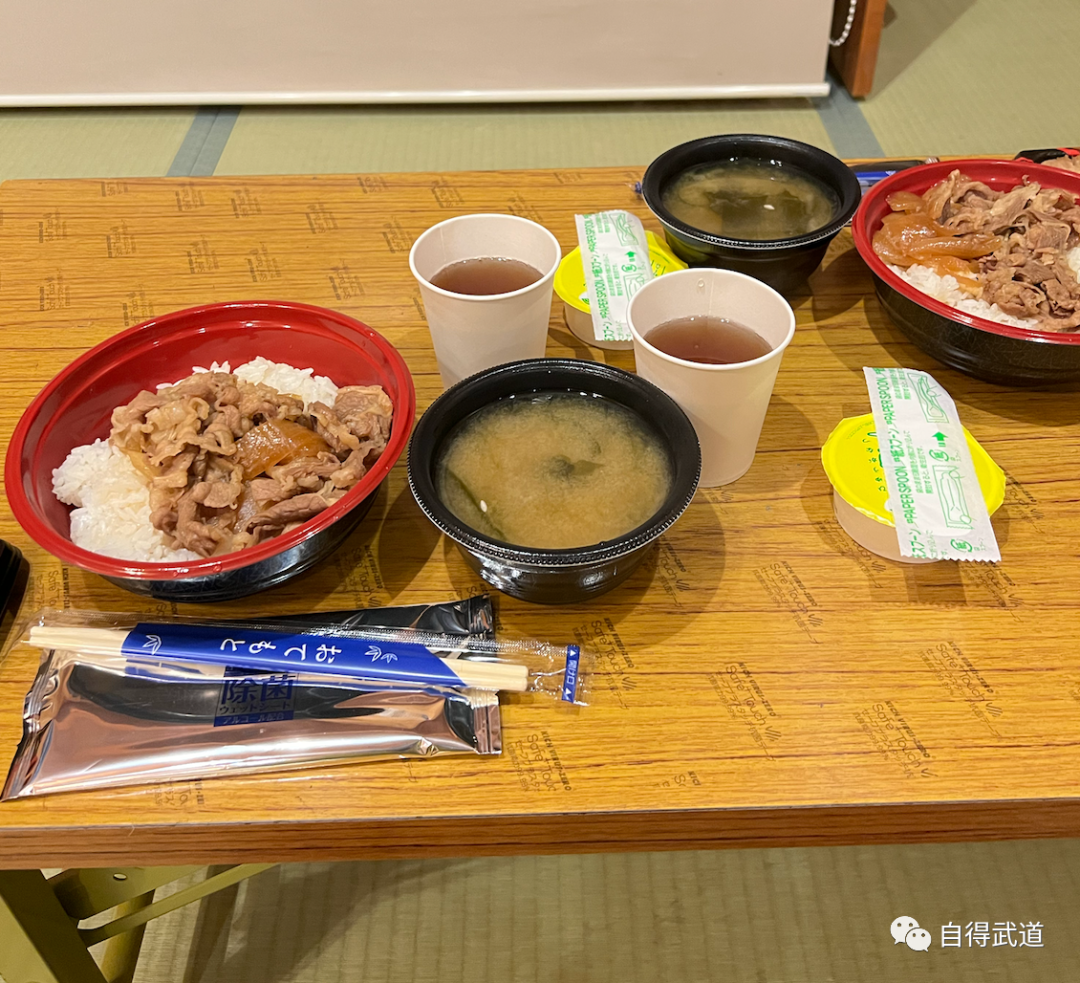 店家早已为我们准备了牛肉饭和味增汤,在那一刻,这就是世界上最美味的食物。我好像从来没有一下子吃掉那么多米饭。