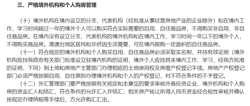 这一条规定是强调,必须在完税并且符合各种手续标准的情况下,出售房产的资金才被允许汇到海外。