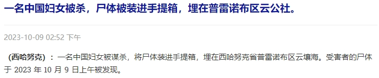 据Fresh News报道,10月9日上午,西港警方在云朗军事基地附近发现一具女尸,尸体被装进行李箱埋在土坑中。