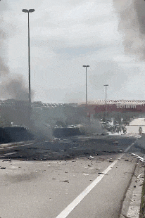根据新闻图片,现场黑烟密布,满地都是残骸,罹难者尸体也横躺在路上。