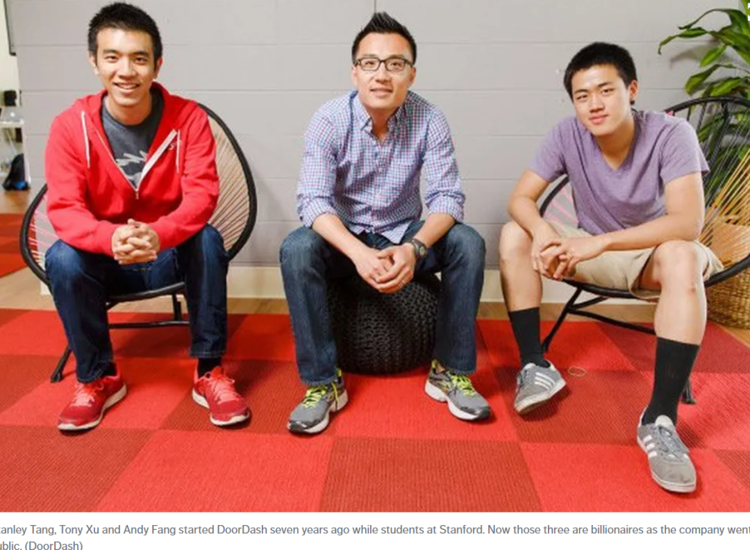 我们尤其关注DoorDash,因为这家成立在美国的公司,是由3位华裔创设的,